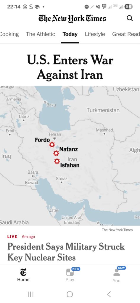 Os Estados Unidos bombardearam três importantes instalações nucleares iranianas na madrugada deste domingo, marcando a entrada direta do país americano na guerra entre Israel e Irã. O presidente Donald Trump confirmou que aviões de guerra americanos atacaram as instalações de Fordo, Natanz e Isfahan. Trump anunciou através das redes sociais que “todos os aviões estão […]